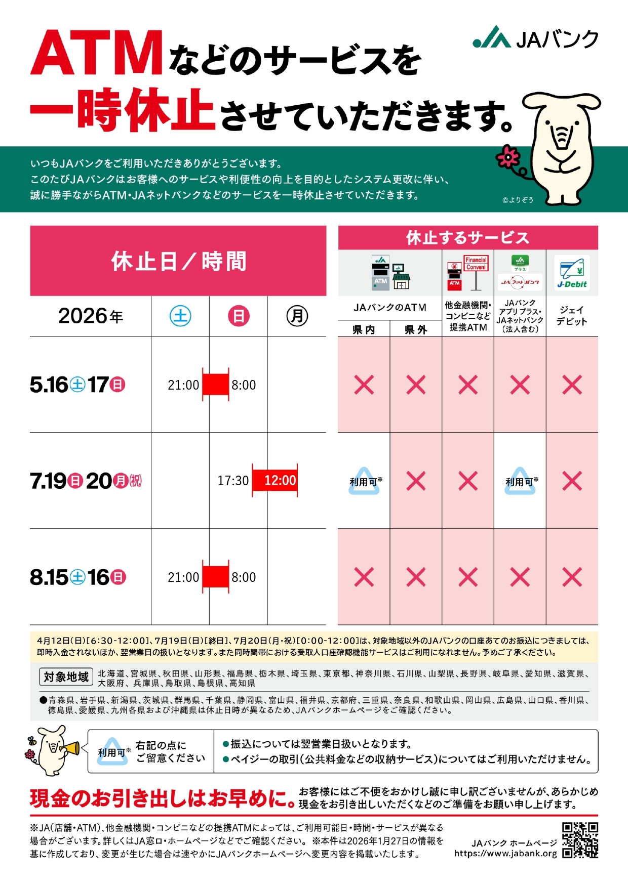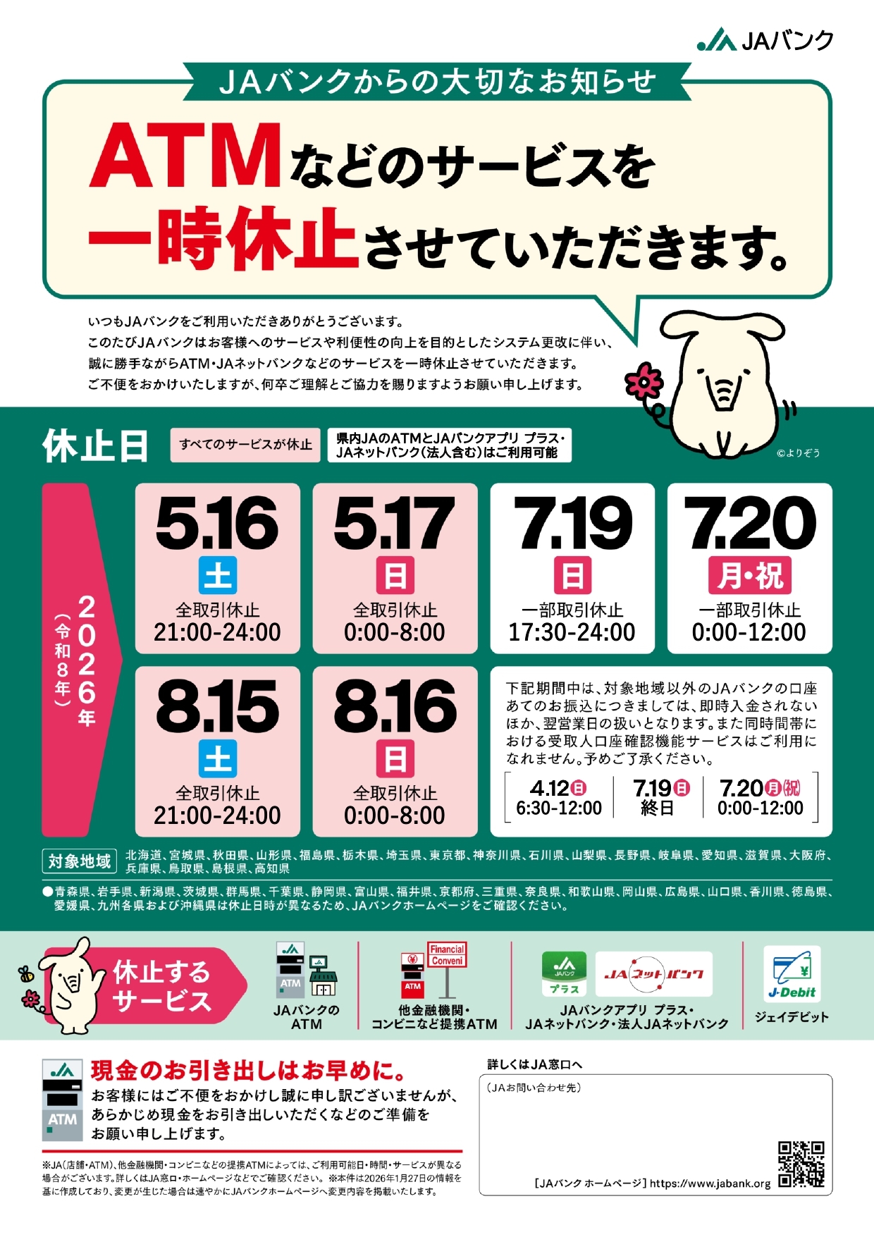 2026-03-19 | 「JAネットバンク利用規定」の一部改正について(事前のご案内) |
